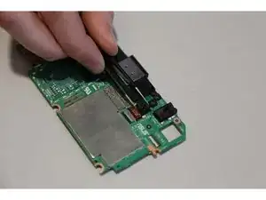 После того как все винты извлечены, можно снять материнскую плату. Аккуратно выньте плату с помощью пластикового инструмента для вскрытия.