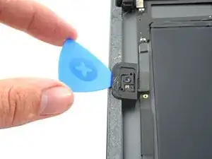 Поверните две монтажные лопатки на левых углах iPad, чтобы слегка приподнять дигитайзер, отделяя при этом последние участки клея.