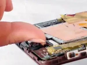 С помощью ногтя поднимите фиксатор ZIF-разъёма. Если ногтей недостаточно, используйте чёрную пластиковую лопатку.