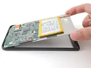 Поднимите верхний край экрана, чтобы отделить оставшийся клей по периметру передней крышки.