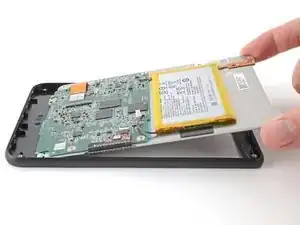 Разверните медиатор плоско под задней крышкой и прокрутите его вокруг нижнего левого угла, чтобы освободить защёлки.