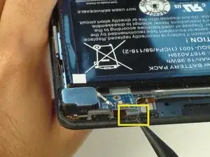 Отсоедините разъём аккумулятора от платы с помощью лопатки.