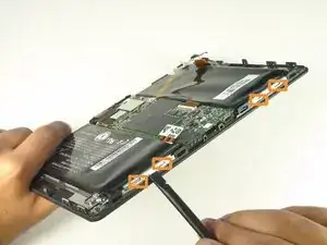 При установке задней крышки вставляйте нижнюю сторону в первую очередь (порты USB и HDMI выступают примерно на 2 мм) — вставка их в вырезы крышки облегчит повторную сборку