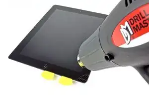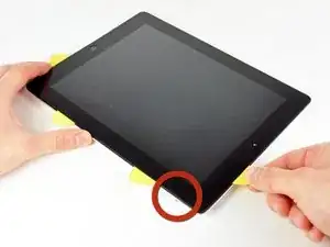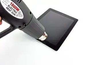 Используйте тепловую пушку, чтобы нагреть край передней панели вблизи нижнего правого угла iPad.