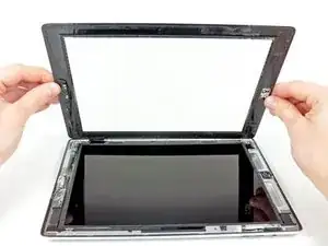 Осторожно поверните переднюю панель от корпуса iPad, убедившись, что между двумя компонентами больше нет клея, который их соединяет.