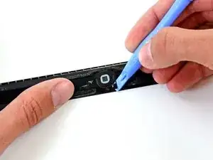 Вставьте край пластикового монтажного инструмента под край кронштейна крепления кнопки «Домой».