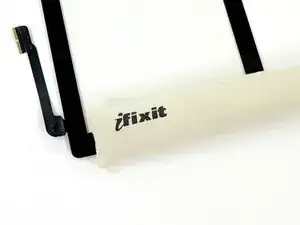 Нижняя часть шлейфа дигитайзера всего в ~1" (25 мм) от низа iPad. Работайте осторожно и медленно, чтобы не перерезать этот шлейф.