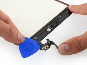 Отклейте оставшийся кусок ленты, удерживающей шлейф кнопки «Домой», вставив медиатор между шлейфом и дигитайзером.