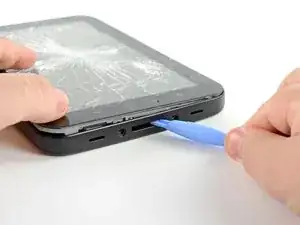 Вставьте медиатор в вновь образованную щель возле нижнего левого края Galaxy Tab.