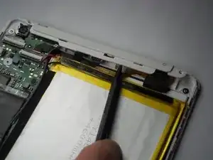 Начните с того, что согните планшет в верхней белой части, чтобы открыть зазор между задней крышкой и корпусом планшета.