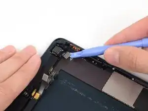 Используйте кончик лопатки, чтобы сдвинуть правый динамик немного в сторону внешней части iPad.