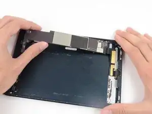 Поместите разогретый iOpener на левую сторону задней части iPad. Оставьте на 90 секунд, чтобы размягчить клей на плате логики.