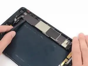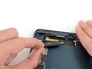 Поднимите сборку платы логики с кабелем Lightning и потяните к верхней части iPad, чтобы извлечь разъём Lightning из корпуса.