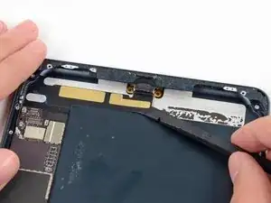 На следующих шагах вы будете поддевать плату логики снизу. Поддёргивайте равномерно, чтобы не согнуть и не создать напряжение на плате логики. Если лопаткой трудно вставить, снова нагрейте и повторно примените iOpener.