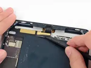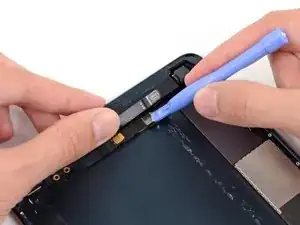 Используйте кончик лопатки, чтобы приподнять ленту кабеля антенны от задней крышки iPad.
