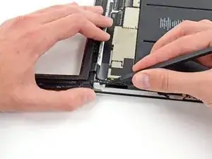 Проводите пластиной для вскрытия вдоль края iPad, освобождая клей по мере продвижения.
