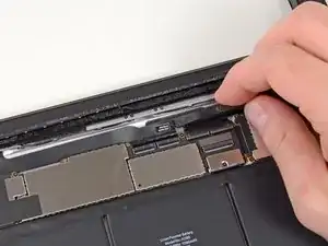 Проведите наконечником пластины вдоль нижнего края iPad, освобождая клей над Wi‑Fi‑антенной.