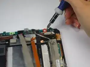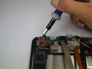 Снимите единственный винт Torx T5 2,5 мм, удерживающий аккумулятор по верхнему краю.