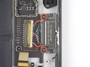 Отверткой Torx T5 выкрутите два винта длиной 3,7 мм, крепящие порт SurfaceConnect.