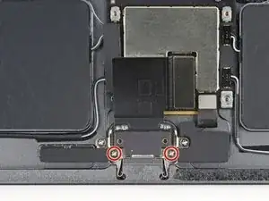 Используйте крестовую отвертку, чтобы удалить два винта длиной 1,6 мм, фиксирующие порт USB-C.