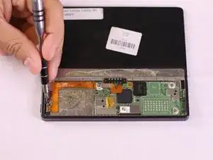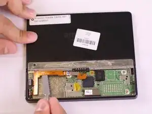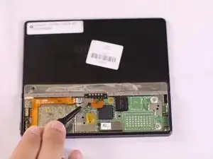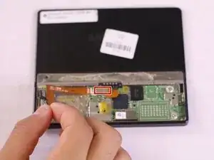 Используйте пинцет, чтобы вынуть оранжевый разъём питания из Kindle. Порт зарядки и кнопка питания прикреплены к этому разъёму.