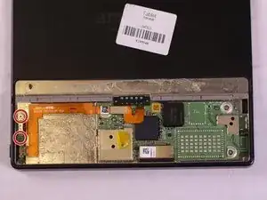 С помощью пинцета аккуратно поднимите ленту с разъёма питания-мостика. Если новый блок поставляется с новой лентой, снимите её полностью; если нет — снимите и положите один уголок лицевой стороной вниз на чистую поверхность, чтобы использовать повторно.