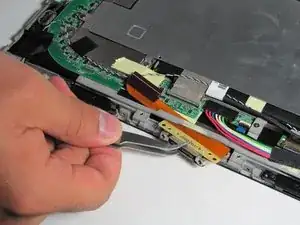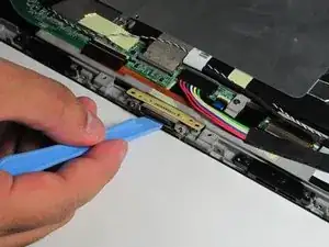 Используйте пластиковый инструмент для вскрытия, чтобы поддеть между корпусом планшета и внешней рамкой. Снимите внешнюю рамку, проходя по всему периметру устройства и поднимая рамку вверх.