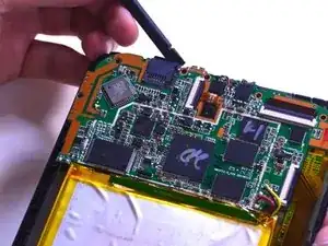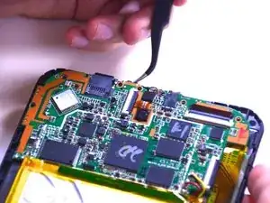 Осторожно приподнимите материнскую плату, чтобы извлечь порт зарядки пинцетом.