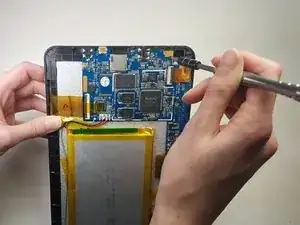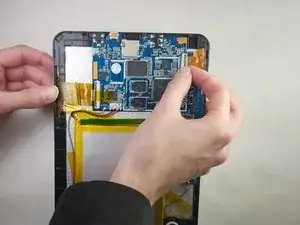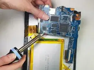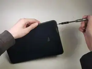 Используя пластиковый инструмент для открытия, вставьте его в щель, где стеклянный экран встречается с корпусом планшета. После того как вы вставите инструмент, проведите им вдоль краев, чтобы отделить пластиковые зажимы и освободить заднюю пластиковую крышку от стекла и внутренних компонентов.