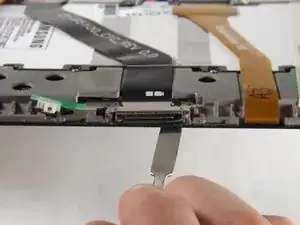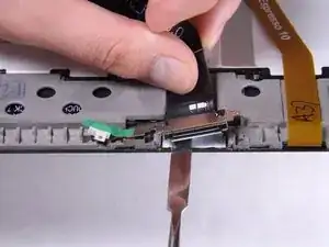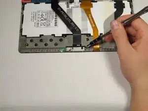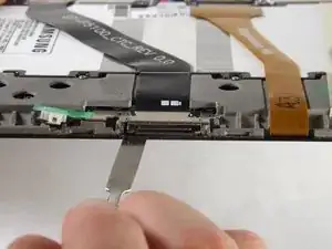 Существует маленькая полоска подкладки, удерживающая кабель порта зарядки к батарее. Возможно, вам придется просунуть усиленную лопатку между кабелем и батареей, чтобы вытащить кабель.