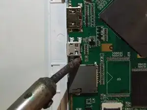 После того как все четыре ножки будут выпаяны, порт зарядки USB можно будет извлечь из устройства.