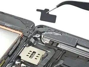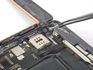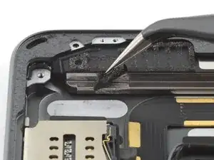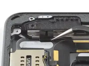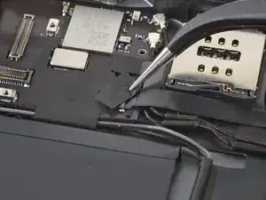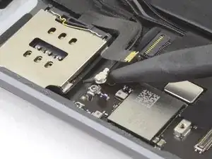 Пинцетом аккуратно извлеките кабель сим-карты прямо из разъёма ZIF.