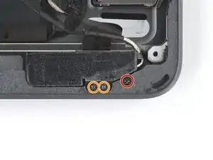 Используйте отвёртку с крестообразным наконечником, чтобы удалить винт длиной 2,3 мм, крепящий правый динамик.