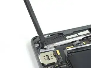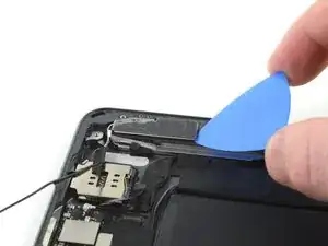 Вставьте инструмент повторно и переместите его к верхнему правому углу устройства, полностью отделив верхний клей.