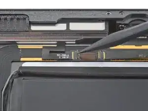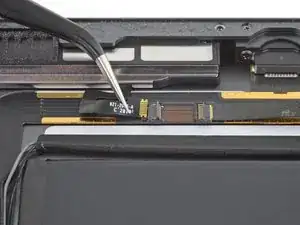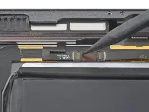 Используйте плоский конец лопатки, чтобы отсоединить кабель ЖК-дисплея, подняв пресс-разъём строго вверх.