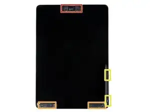 Проверьте функции iPad и установите заранее вырезанные полосы клея на обратную сторону дисплея, следуя нашему руководству по нанесению клея для дисплея, перед окончательной герметизацией.