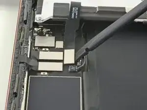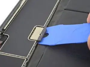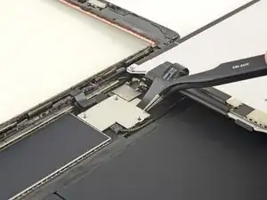 Шлейфы дисплея расположены примерно посередине от нижнего края iPad. Прекратите перемещение, когда дойдёте до трёх дюймов от нижнего края устройства.