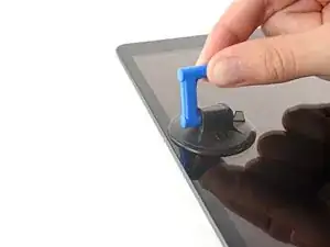 Когда экран станет тёплым на ощупь, прикрепите присоску к левому краю экрана как можно ближе к краю.