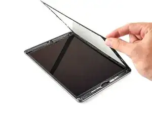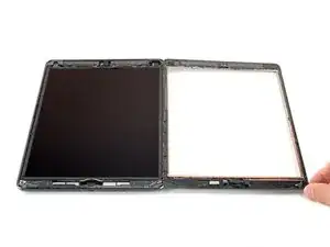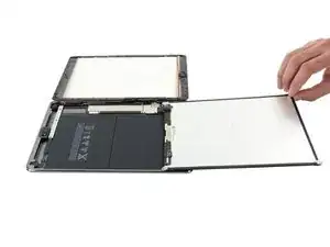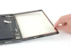 После полного отделения клея откройте сенсорный экран, как книгу, и положите его параллельно корпусу iPad.