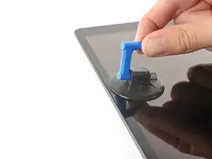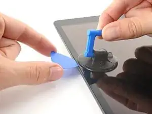 Поднимите экран присоской, чтобы образовать небольшой зазор между цифровизатором и рамкой.