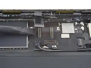 Обращайте внимание на шлейфы дисплея при повторной сборке. Убедитесь, что они правильно сложены под ЖК-экраном, чтобы избежать повреждений.