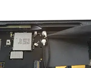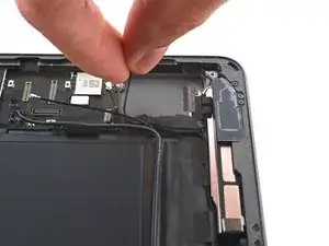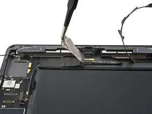 Отделите левый антенный кабель от задней крышки вдоль нижнего края iPad.