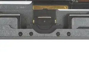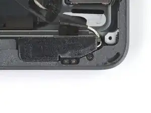 С помощью крестообразной отвёртки отвёрните винт длиной 2.3 мм, закрепляющий правый динамик.