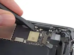 Используйте наконечник лопатки, чтобы аккуратно приподнять разъём аккумулятора от его гнезда на плате.