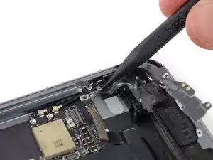 Используйте наконечник лопатки, чтобы приподнять кабель кнопки «Домой» от его разъёма на плате.