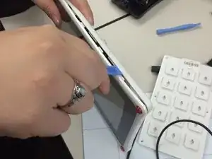 Вставьте инструмент с плоским лезвием и попытайтесь аккуратно поддеть крышки, чтобы разъединить их. Если поддёргивать слишком грубо, они могут треснуть и сломаться. (НЕ размещайте магнит рядом с планшетом при его открытии. Это уничтожит все файлы и программы на планшете, сделав устройство бесполезным.)