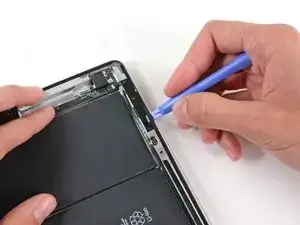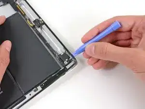 Вам нужно освободить клей, удерживающий антенну, не повредив хрупких элементов, соединяющих антенну с нижней частью iPad. Следуйте следующим шагам внимательно.