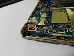 Отключите шлейф, соединяющий разъем для наушников с материнской платой, подняв черный разъем с помощью пластикового открывателя.