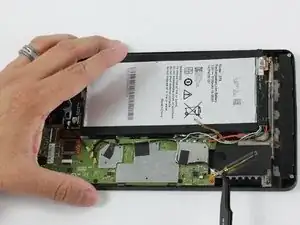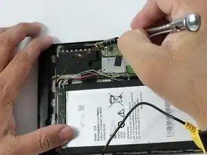 Аккумулятор плотно приклеен, поэтому потребуется усилие, но одновременно следует действовать осторожно, чтобы не повредить другие компоненты устройства.