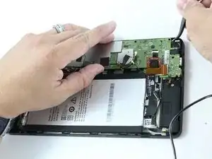 После того как провода будут отсоединены от материнской платы, аккумулятор можно будет извлечь из устройства.